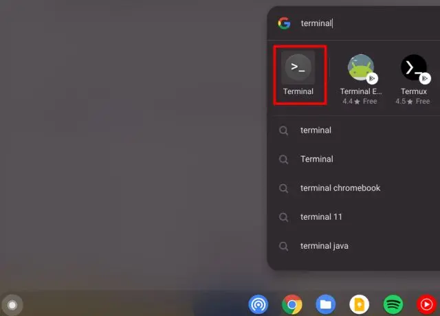 3. Uma vez instalado o Linux, abra o Terminal Linux. Para fazer isso, pressione a tecla de pesquisa no teclado, digite “ terminal ” e abra-o. Você também pode abrir a App Drawer e procurar por “aplicativos Linux”. Lá, você encontrará “Terminal”.