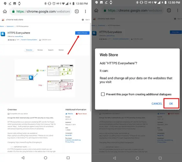 2. Depois disso, abra o navegador e procure a extensão que deseja instalar , assim como você faz em seu desktop. Toque em “Adicionar ao Chrome” e toque em Ok. Agora a extensão será instalada.