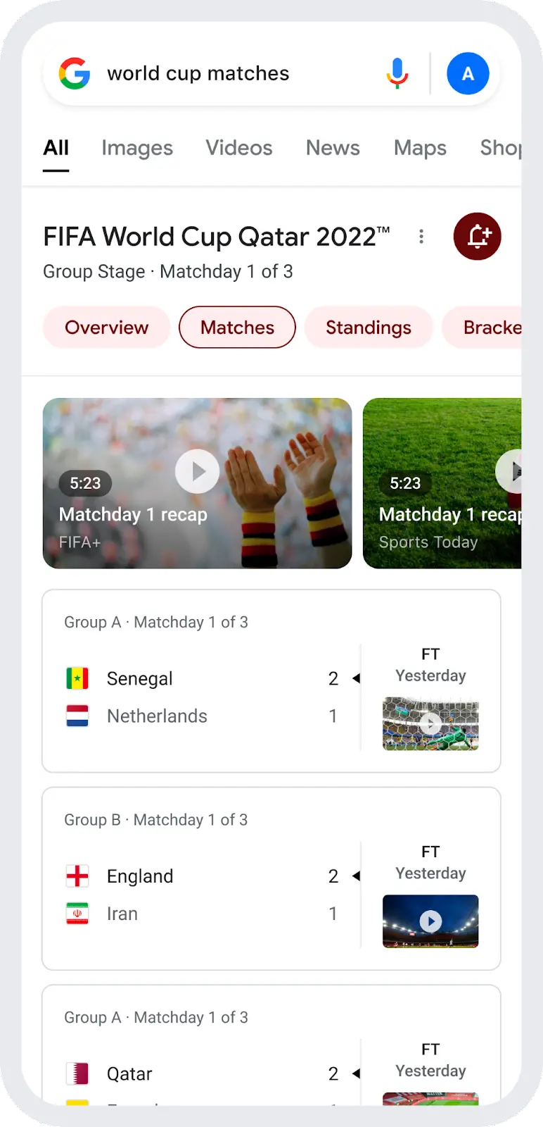 Ao pesquisar sobre a Copa do Mundo no Google, os torcedores poderão acompanhar seus times favoritos e, ao ativar a campainha no canto superior direito da tela do Google app, os usuários receberão as principais notificações sobre os melhores momentos dos jogos, incluindo o horário e lembretes.