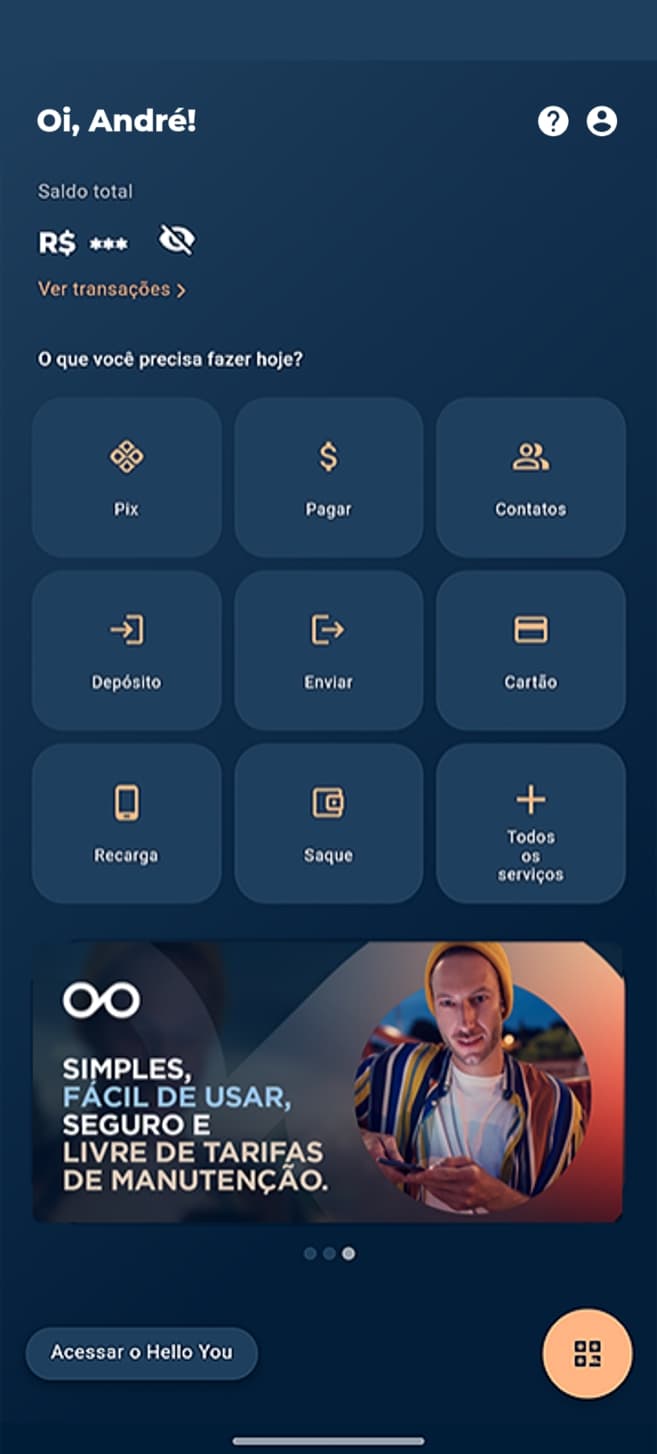 Além de transações bancárias mais seguras, o Dimo oferece todas as funcionalidades de uma conta corrente completa. A partir da UX (experiência do usuário) simplificada e intuitiva, é possível fazer pagamento de contas e boletos, transferir por Pix e TED, optar pela portabilidade de salário, recarregar os créditos no celular, sacar no Banco24Horas e antecipar até cinco parcelas do saque-aniversário do FGTS.