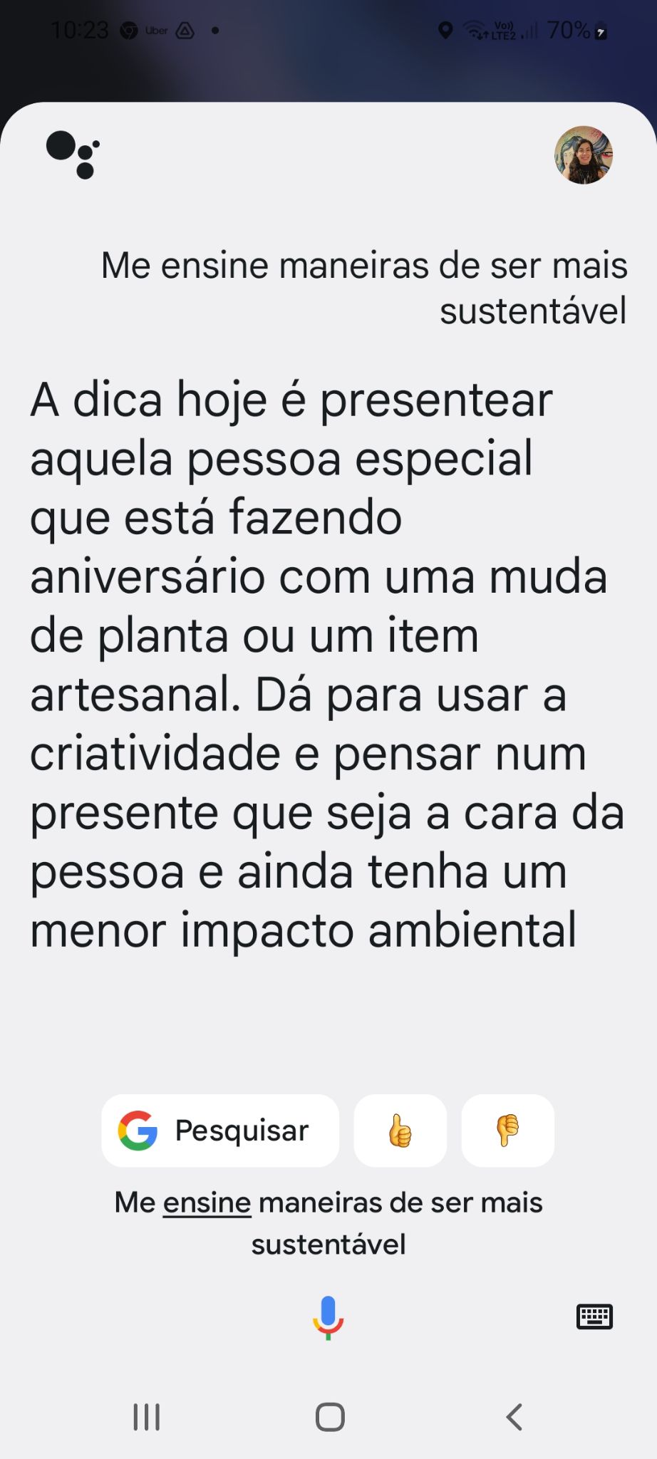 Para acessar as dicas, basta dar o comando de voz “Ok Google, me dê uma dica de sustentabilidade” ou “Ok Google, me dê sugestões para ser mais sustentável”.