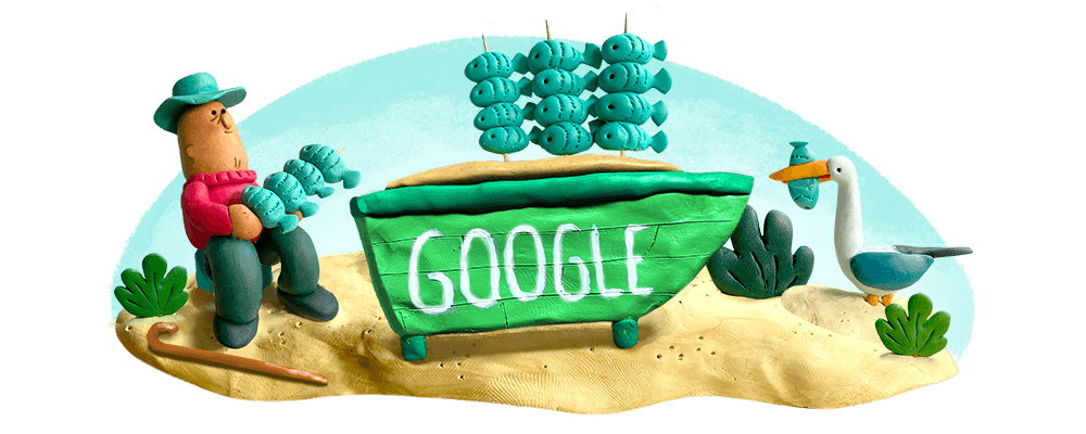 Um aroma salgado e defumado no sul da Espanha só pode significar uma coisa: é temporada de espetos. O Doodle de hoje (feito à mão com argila!) celebra o sabor do verão, um prato espanhol popular de sardinhas espetadas que são tradicionalmente assadas em madeira sobre a praia.