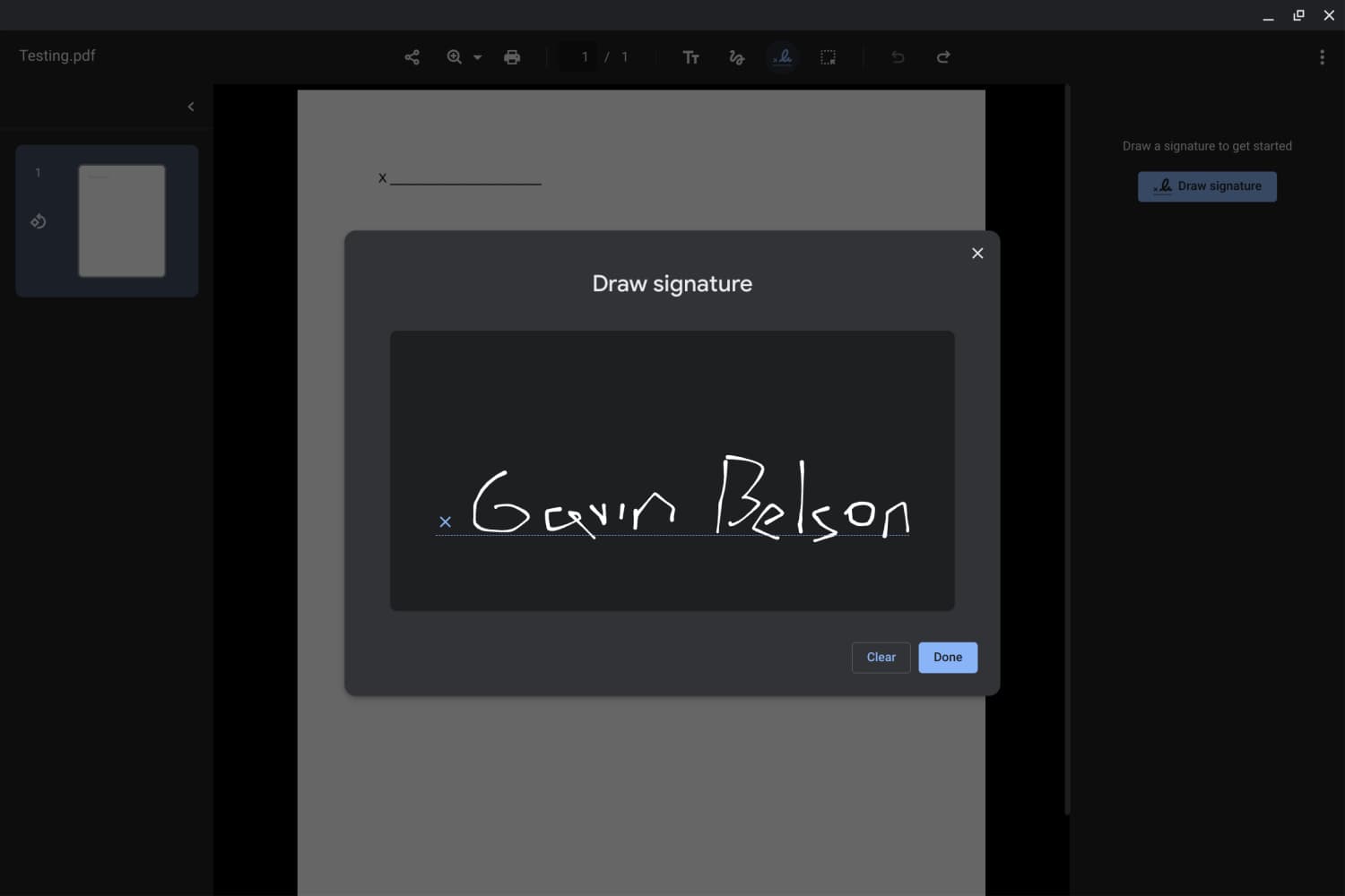 Você pode adicionar uma assinatura, o que é muito mais fácil com uma tela sensível ao toque do que com um trackpad e salvá-la para uso futuro.