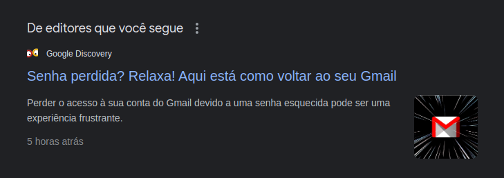 Essa funcionalidade é ativada quando a consulta feita pelo usuário retorna conteúdo de um editor específico do Google News que ele segue ativamente.