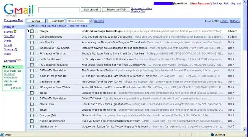 Em 1º de abril de 2004, o serviço de e-mail revolucionário foi lançado em meio a dúvidas e desconfiança. Com promessas de armazenamento infinito (1 gigabyte de armazenamento era gigantesco) e totalmente gratuito, muitos acreditaram se tratar de uma brincadeira de mau gosto.
