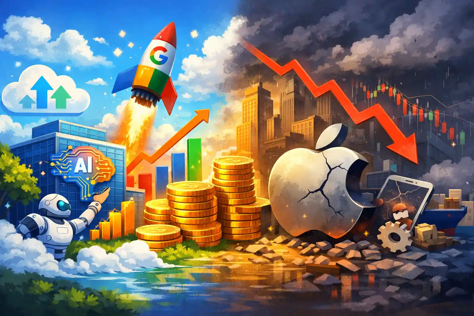 A Alphabet voltou a superar a Apple em valor de mercado após…